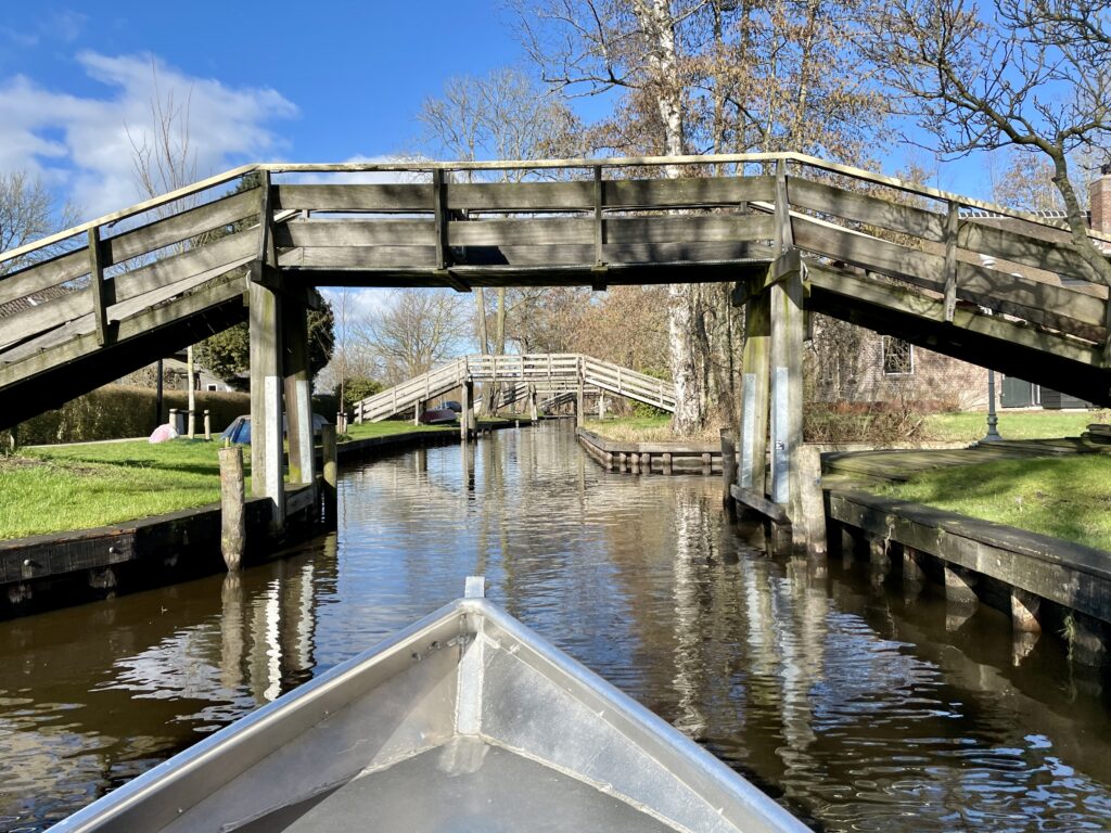 De meeste mensen die Giethoorn bezoeken zullen zich bewegen via de boot of wandelend. Er zijn tal van verhuurbedrijven waar bezoekers boten, kano’s en waterfietsen kunnen huren om de kanalen te verkennen. Wil je niet zelf varen met een bootje, dan kan je ook kiezen om met een iets grotere boot met kapitein door de grachten te varen. Voor één uur varen met een consoleboot (een fluisterbootje met een stuurwiel) betaalden wij afgelopen maand 35 euro voor een 7 persoonsboot. Binnen dit uur redt je het gemakkelijk om de donkerblauwe route te varen. De route is éénrichting dus het wijst vanzelf en er staan ook nummertjes op palen. Bij ons was het niet erg druk op het water, maar in de zomer kan het wel heel druk zijn op het water, dus kies een goede tijd uit om er een bezoekje te brengen. Na het varen zijn we door het dorpje gaan wandelen, wat ook echt leuk is om te doen.