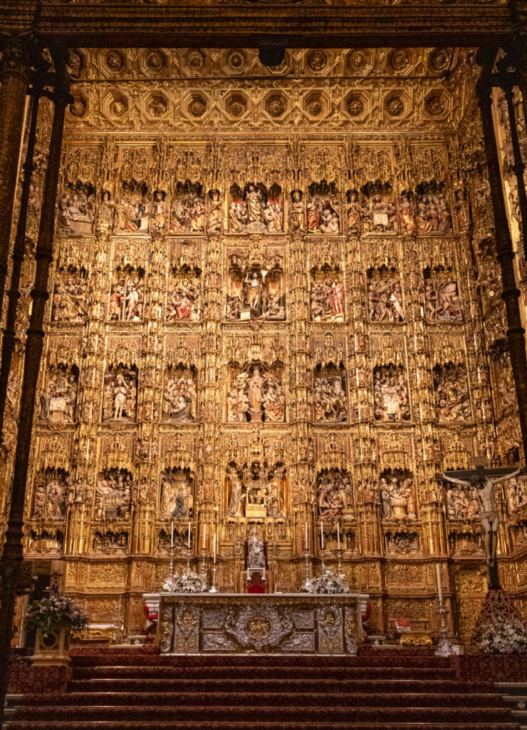 Zodra je binnen de kathedraal stapt, vind je een ware schatkamer aan kunst en geschiedenis. Wat meteen opvalt is het enorme altaarstuk met 45 scenes uit het leven van Jezus dat uit hout gesneden is. Het ruim 23 meter hoge houtsnijwerk is belegd met bladgoud. De bouw van het altaar gaat al terug naar de 15e eeuw. Bezoek ook het grafmonument van Christoffel Columbus. Het monument is in 1899 geplaatst in de kerk, waarbij de overblijfselen vanuit Havana in de kist zijn overgeplaatst. De kist wordt gedragen door vier figuren die de vier koninkrijken van Spanje vertegenwoordigen. Naast deze hoogtepunten vind je in de Kathedraal ook de Koninklijke Kapel (Capilla Real), die gewijd is aan koning Ferdinand III die Sevilla veroverde. Verder is de kathedraal rijkelijk versierd met schilderijen, altaarstukken en monumenten.