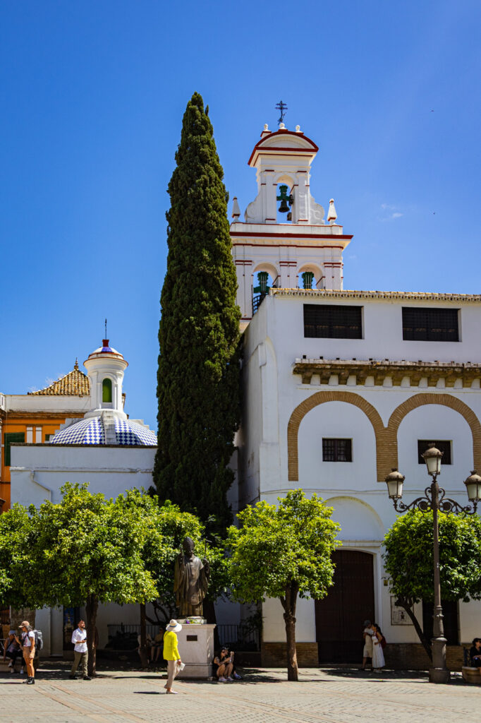 Barrio de Santa Cruz: Het Oude Joodse Kwartier, ook wel het hart van Sevilla Direct naast de kathedraal en het Alcázar ligt de oude Joodse wijk Barrio de Santa Cruz. De wijk vol smalle kronkelende straatjes, witgekalkte huizen en verborgen patio’s is rijk aan leuke winkeltjes. De kleine pleintjes vol tapasbars en boetiekhotels worden graag bezocht door de toeristen. De wijk gaat al terug gaat naar de 15e eeuw. Je komt dan ook veel oude mooie statige panden tegen. Loop een stukje vanaf de kerk richting Hospital de los Venerables en je slingert al een stukje door de kleine schattige straatjes.