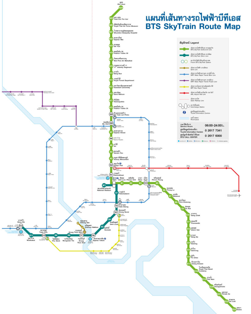 De Airport Rail Link is een bovengrondse metrolijn die verschillende delen van de stad bereikt. Vanuit het vliegveld kan je de blauwe lijn nemen die overal stopt en overstappen naar je juiste metro. Of de snellere gele of rode lijn. Het metro netwerk is een prima vervoermiddel in Bangkok om grotere stukken te overbruggen. Voor meer informatie over tarieven kan je terecht op de BTS skyline.